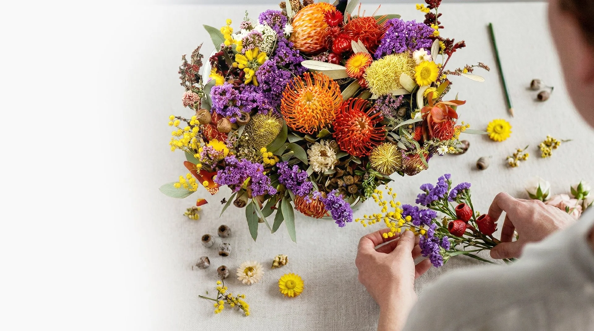 As Enflower grows, our vision is to open a dedicated showroom for native botanicals, dried flowers, and handcrafted floral pieces. For now, we offer a refined online collection of premium Australian native flowers, dried arrangements, and modern artificial and wedding florals across Melbourne.
